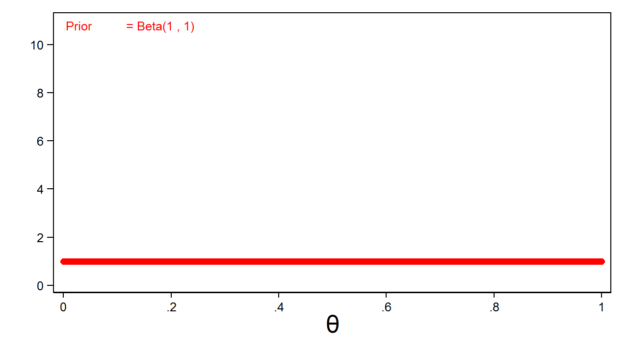 Phân phối beta(1,1) này được gọi là phân phối tiên nghiệm không có thông tin vì tất cả các giá trị của tham số đều có xác suất xảy ra như nhau.
